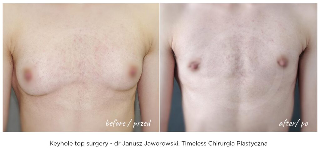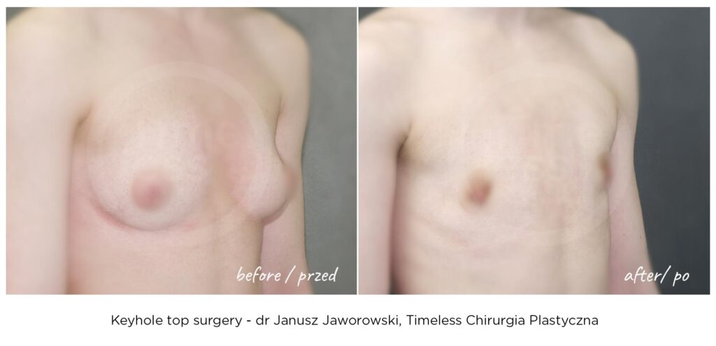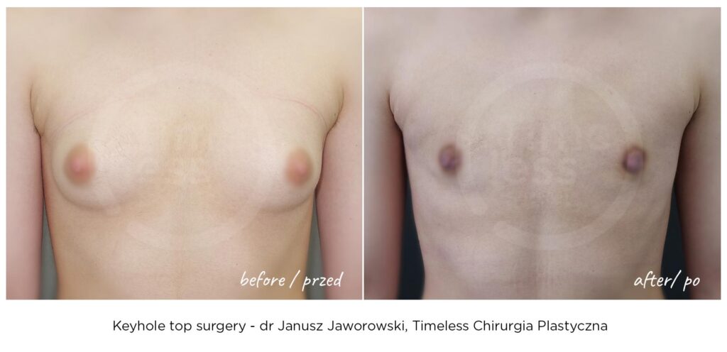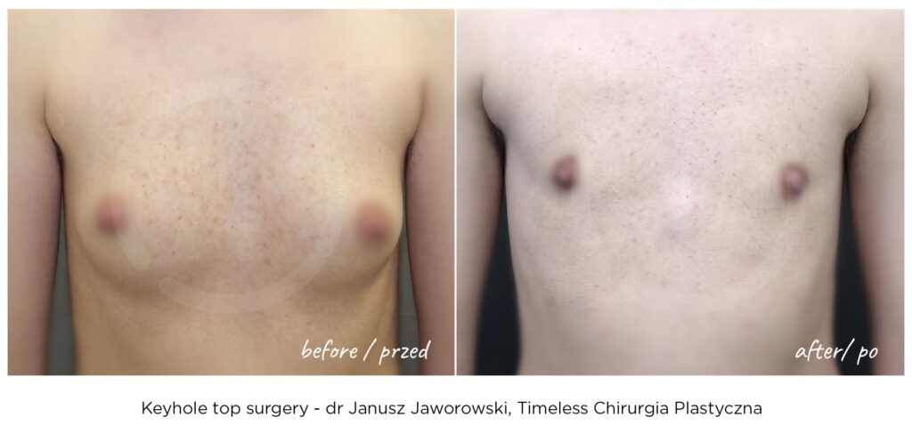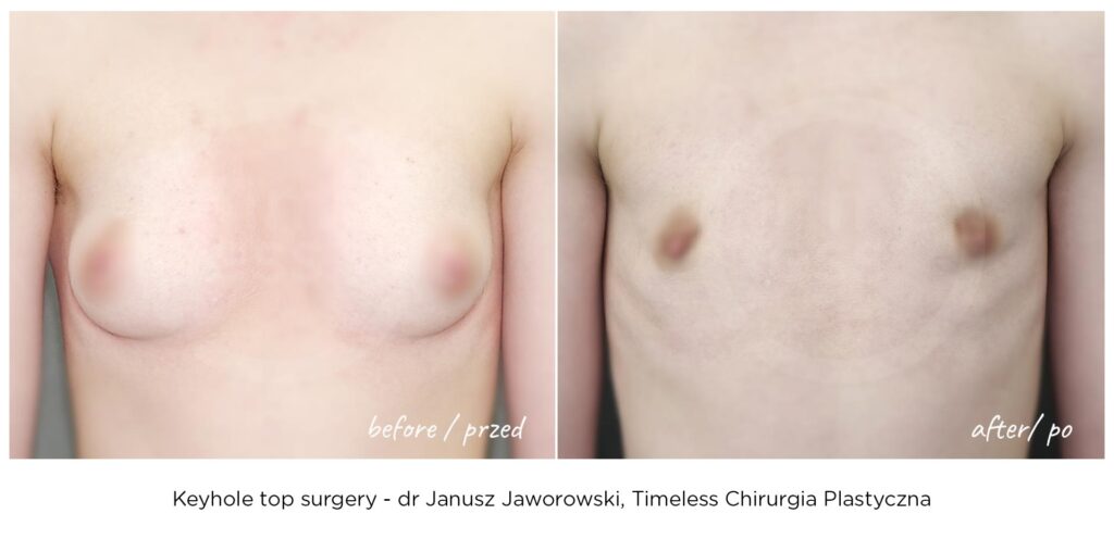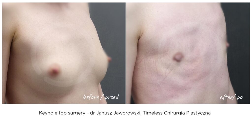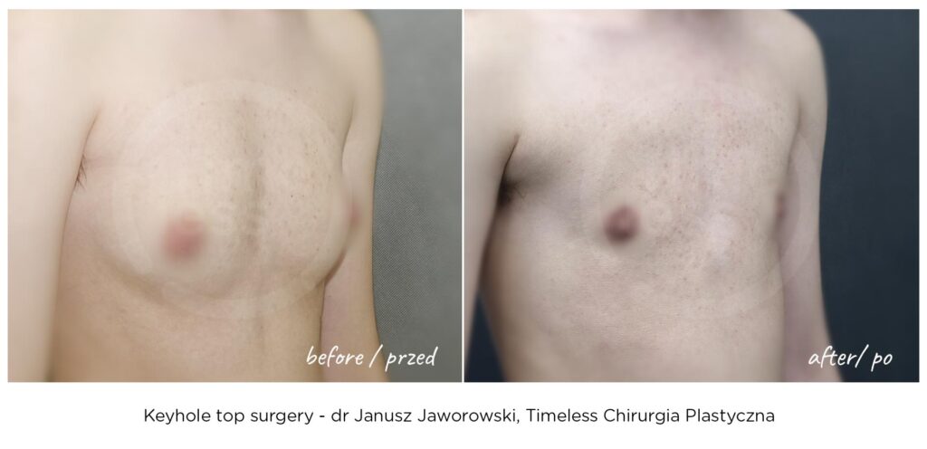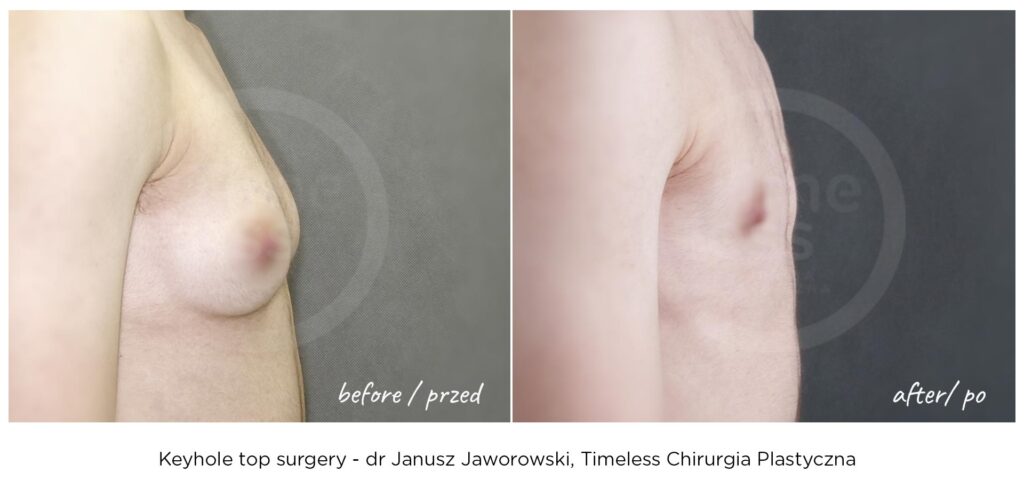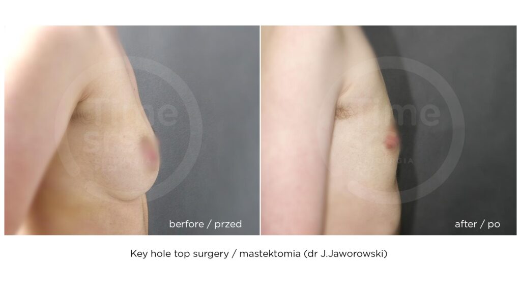 Rezultaty zabiegów top surgery (mastektomii), maskulinizacji twarzy, metoidioplastyki i innych wykonywanych w ramach tranzycji FTM, zależą w dużym stopniu od ustalonego planu leczenia, budowy ciała pacjenta oraz przebiegu rekonwalescencji. Nasza klinika – Timeless Chirurgia Plastyczna, jest zaufanym partnerem na drodze do osiągnięcia pożądanych rezultatów. Na zdjęciach prezentujemy rezultaty operacji przeprowadzonych w naszej klinice, jednak mają one wyłącznie charakter poglądowy i nie należy na ich podstawie oceniać możliwych efektów operacji we własnym przypadku.